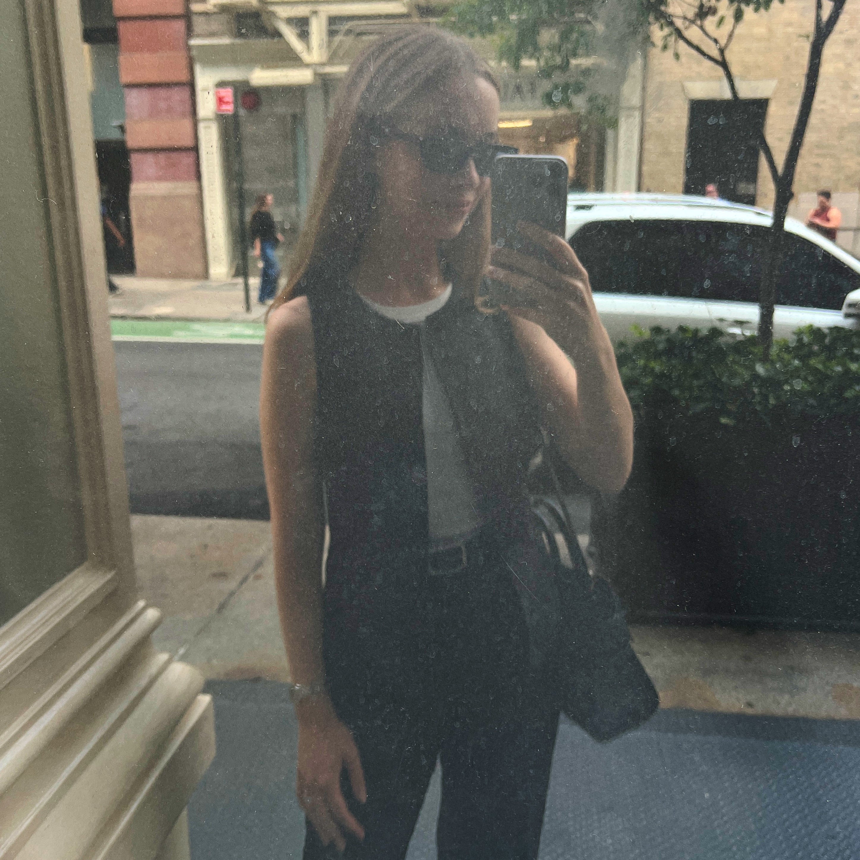 I try to achieve an effortless chic aesthetic either by wearing an oversized blazer over a silk dress, or wearing it over a mini dress, so that the blazer is longer than the dress - I think that’s quite interesting. I also often wear a blazer with classics, such as a t-shirt, tank top or anything denim to create a contrast of preppy and easy-going.