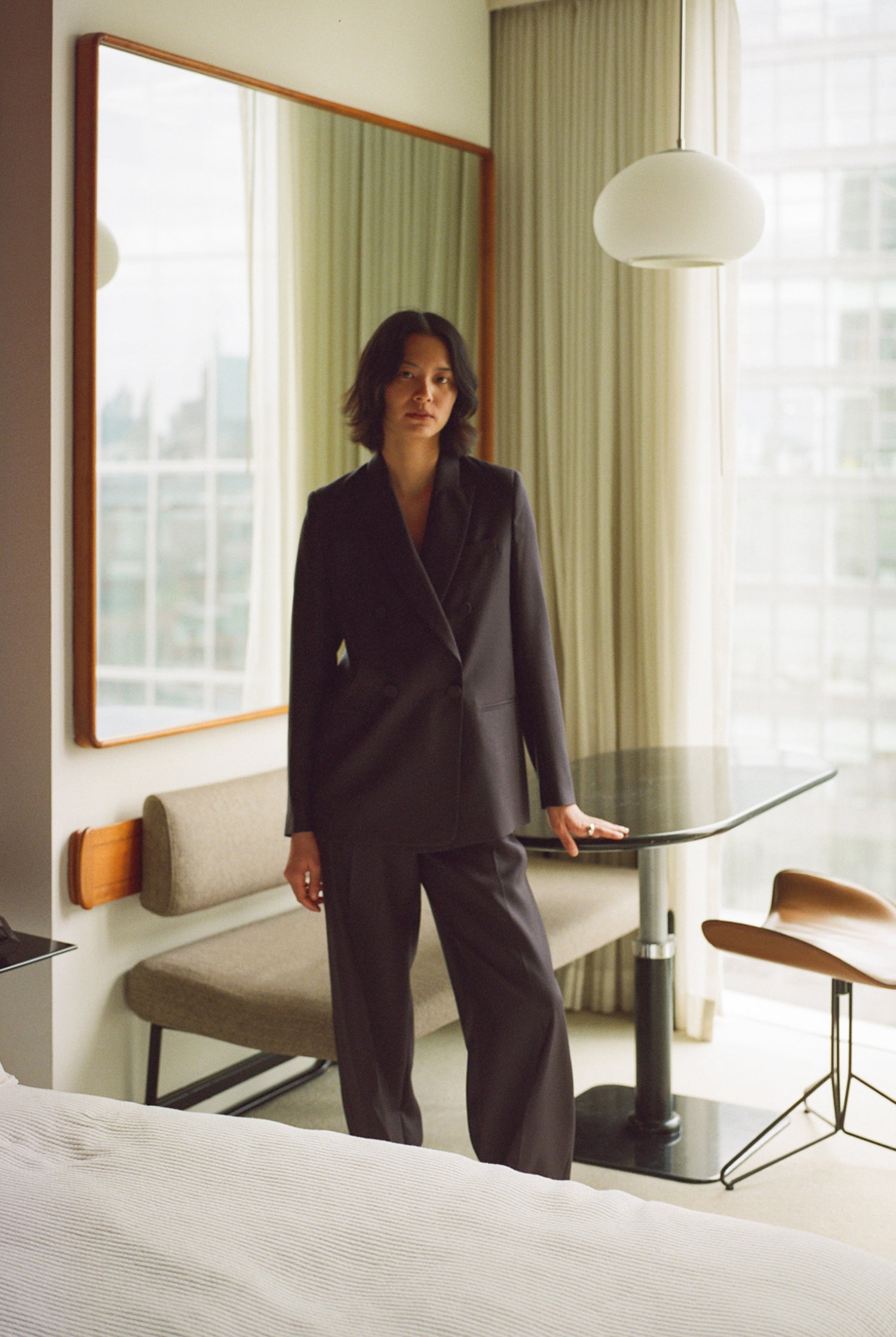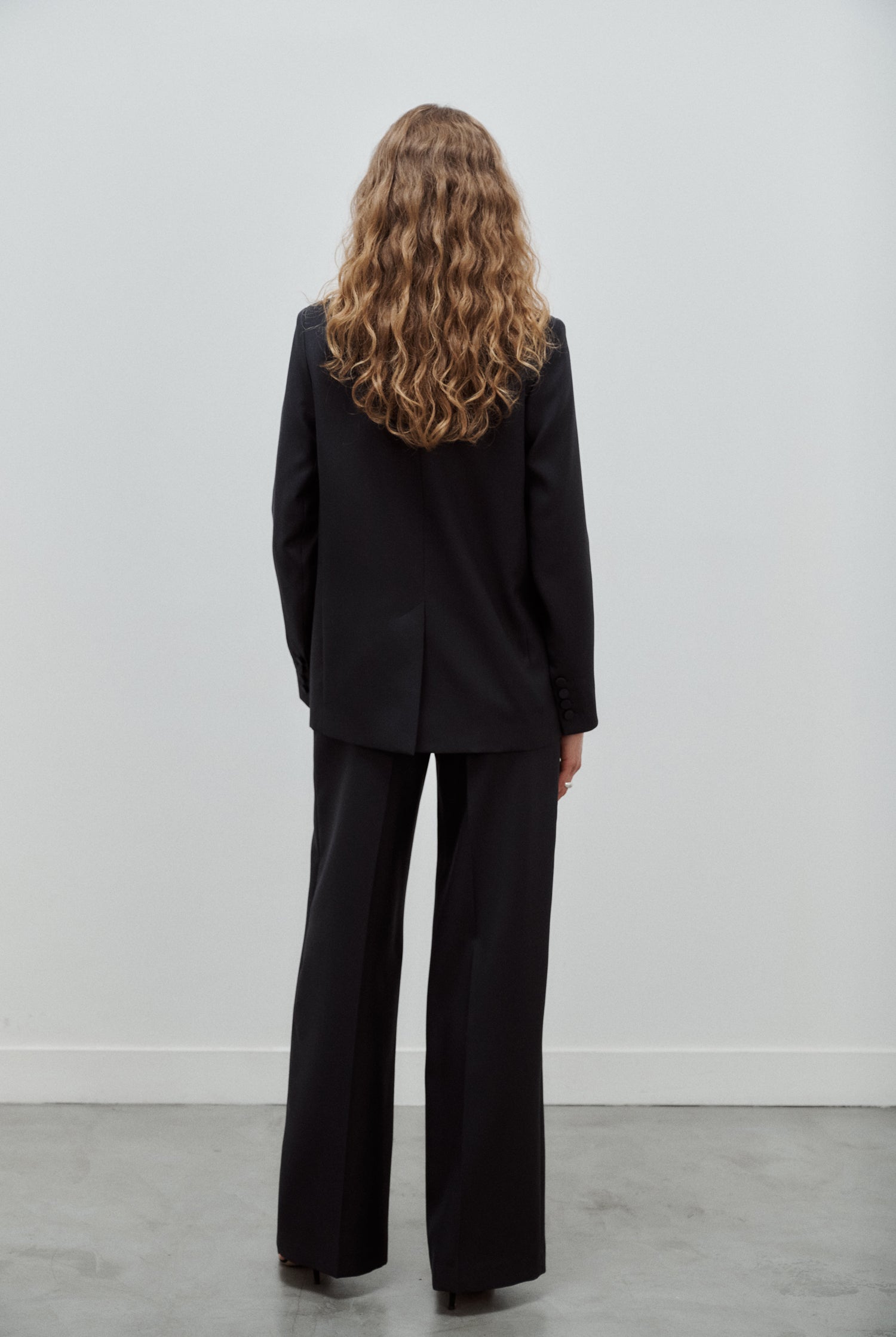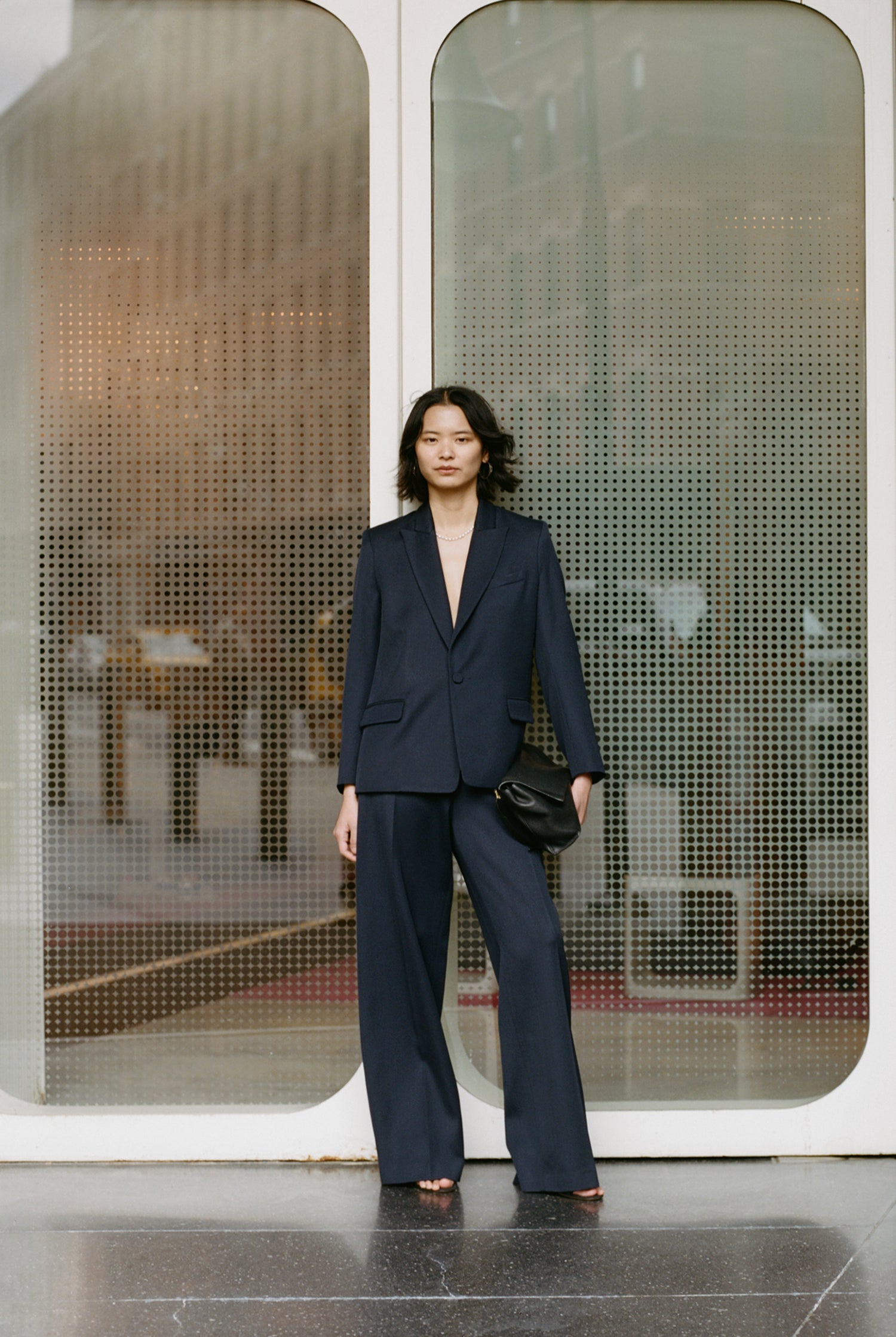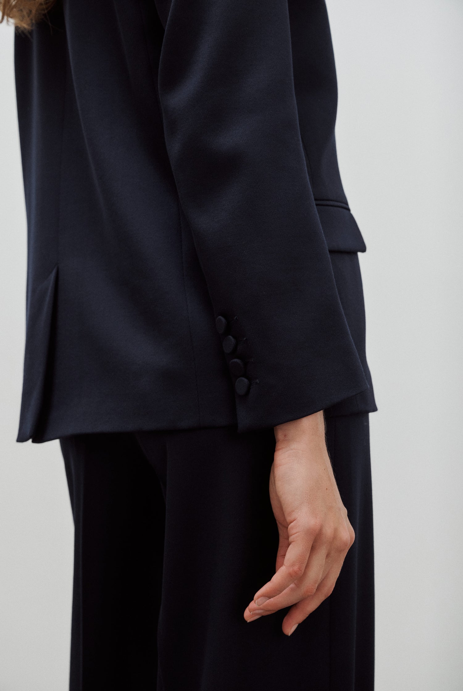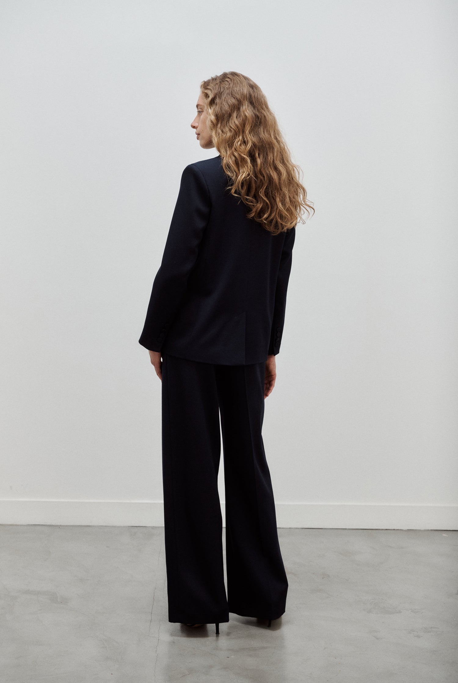 Worn as a separate blazer or paired with matching pants for a pantsuit, the jacket is a true wardrobe staple for women. Available in navy blue, black, and beige wool gabardine or black wool twill, our matching sets are essentials that can be worn all year round and will stand the test of time, regardless of fashion trends.