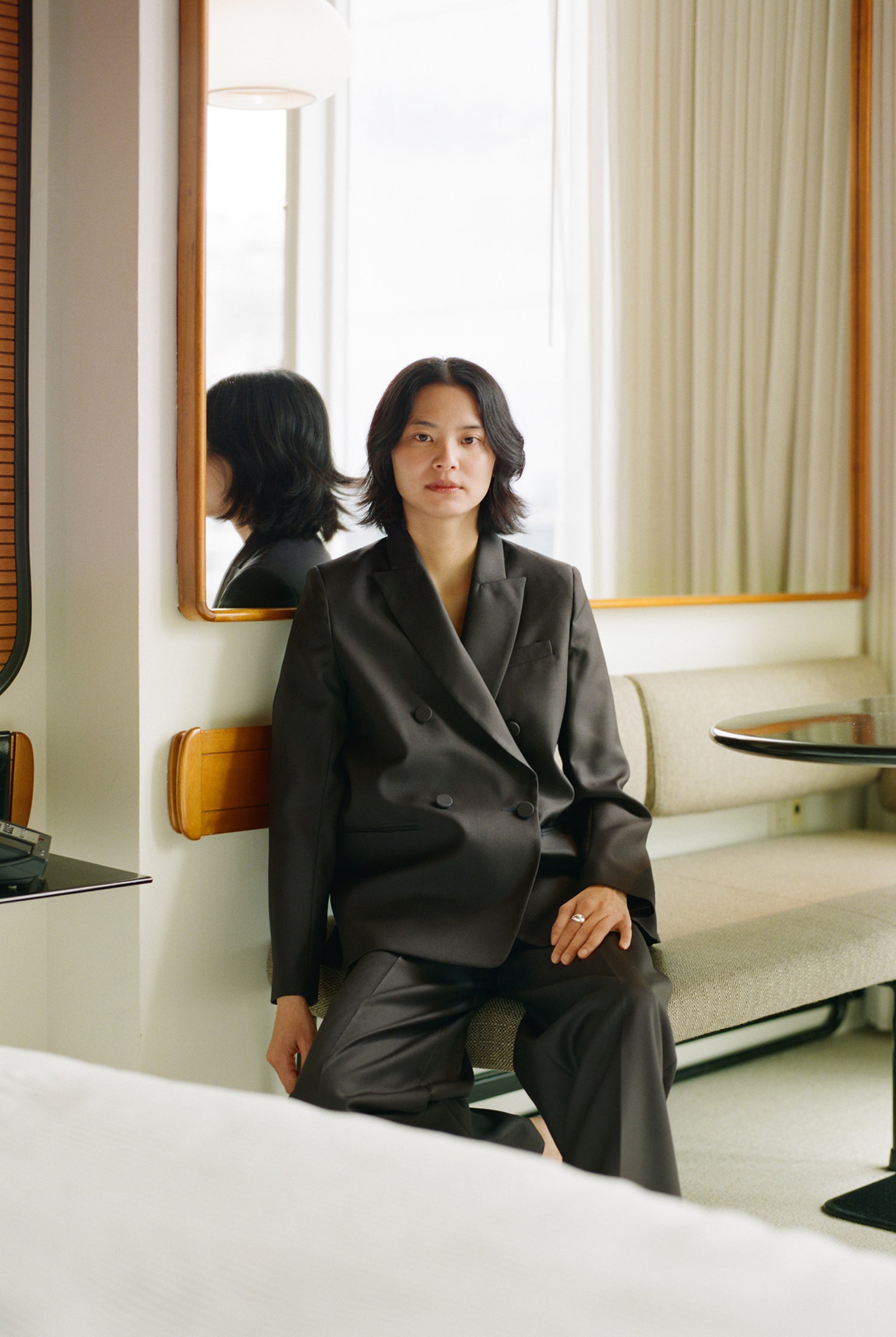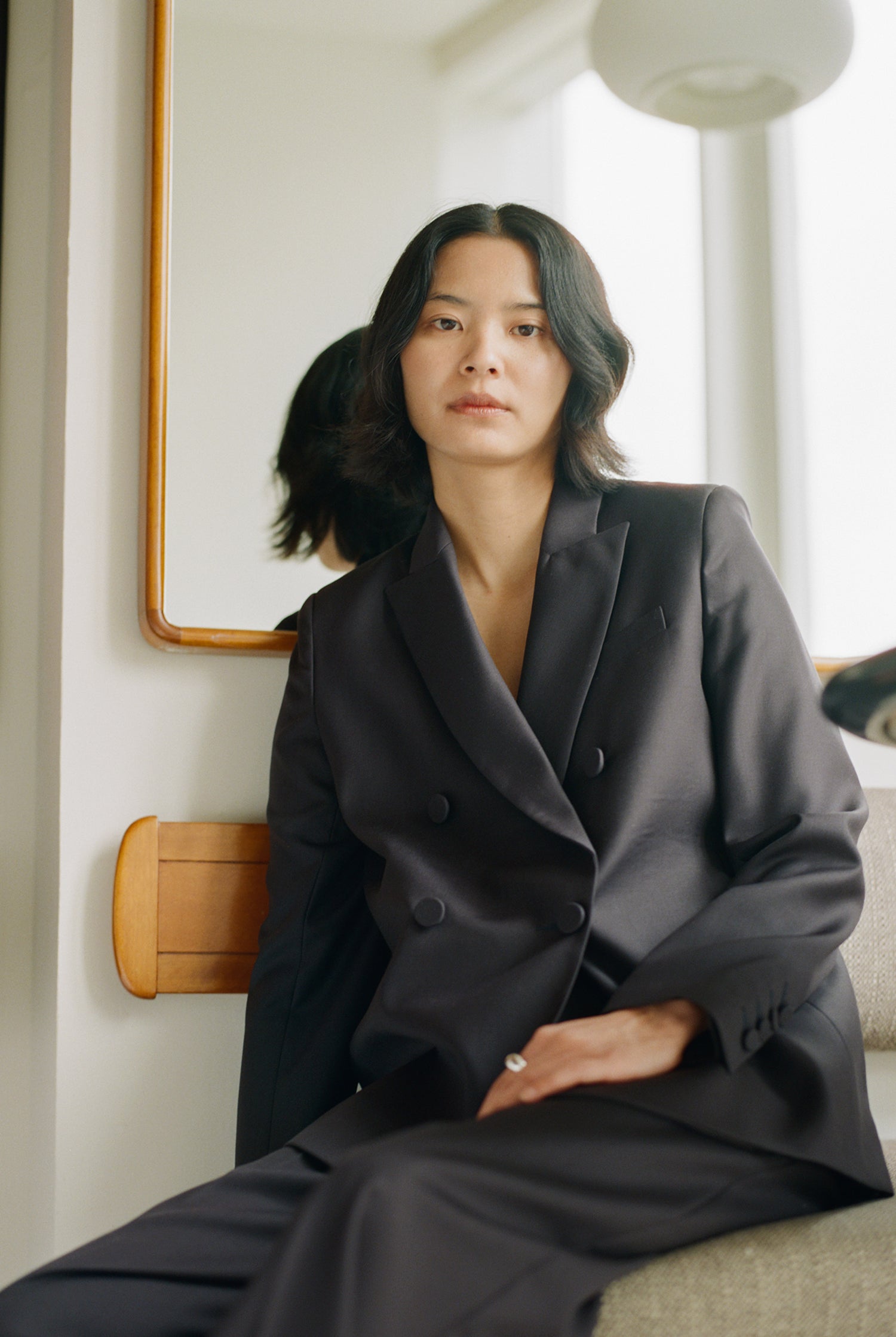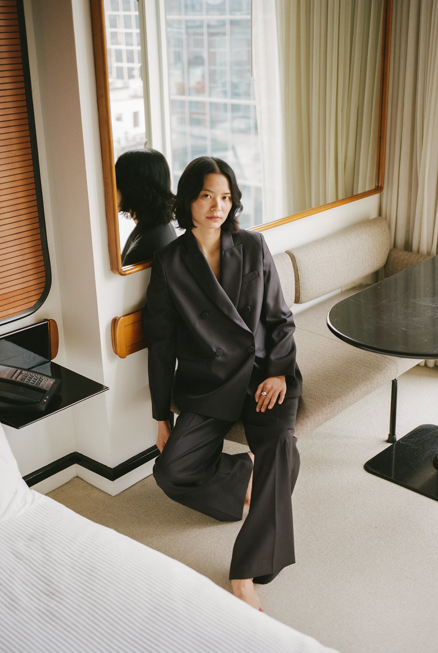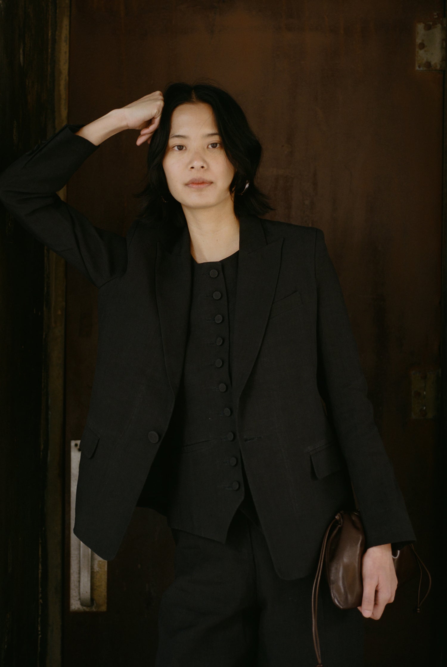 Worn as a separate blazer or paired with matching pants for a pantsuit, the jacket is a true wardrobe staple for women. Available in navy blue, black, and beige wool gabardine or black wool twill, our matching sets are essentials that can be worn all year round and will stand the test of time, regardless of fashion trends.