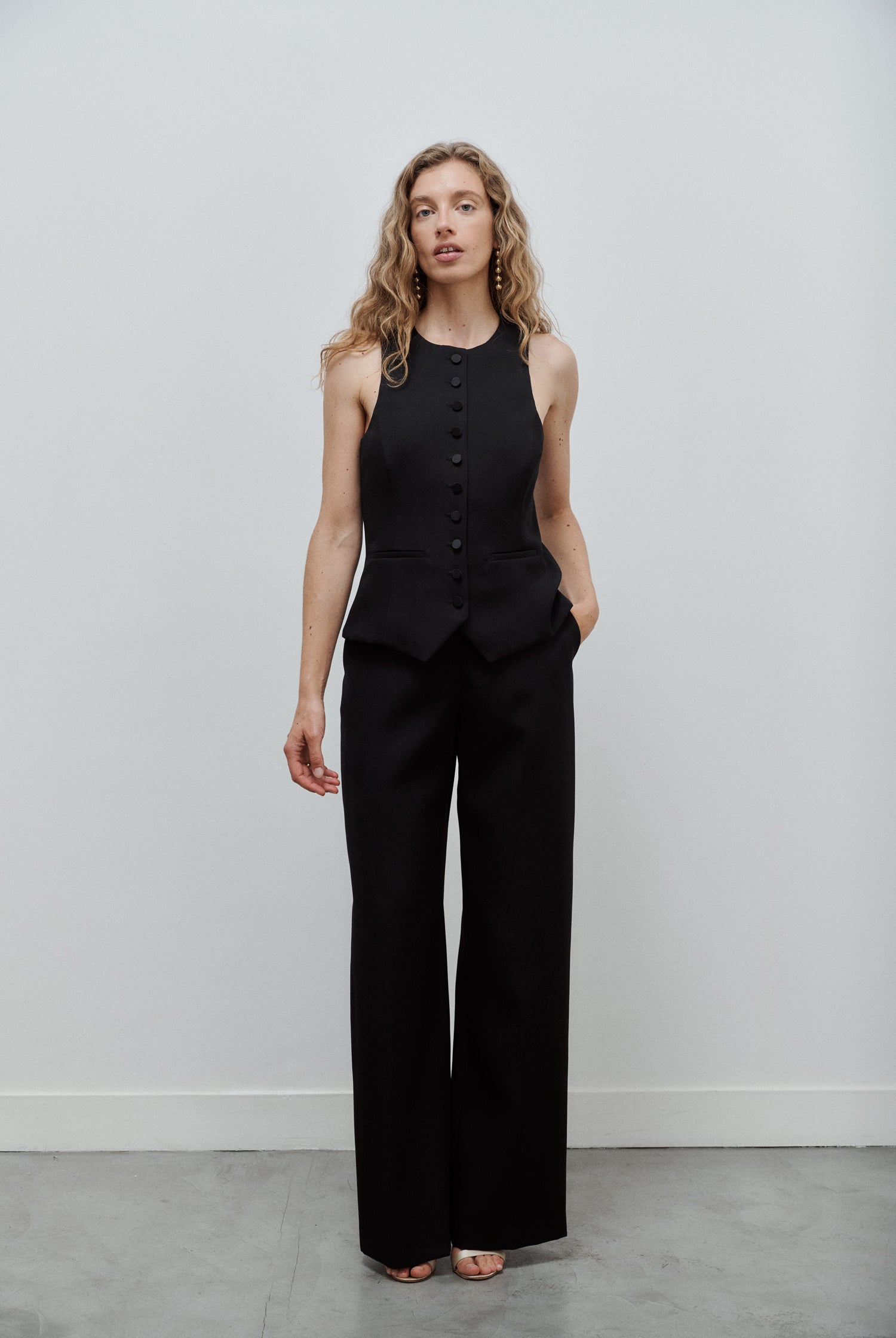 Originating from the traditional men's three-piece suit, the vest has established itself as a piece that can be worn separately, without necessarily pairing it with a jacket and pants. First worn by men and then by women, the tailored vest is now a timeless piece in both men's and women's wardrobes. Vests come in a variety of cuts: the tailored vest can hug the female form in a more fitted version, or can have more masculine-feminine or even rock accents in a straighter version.