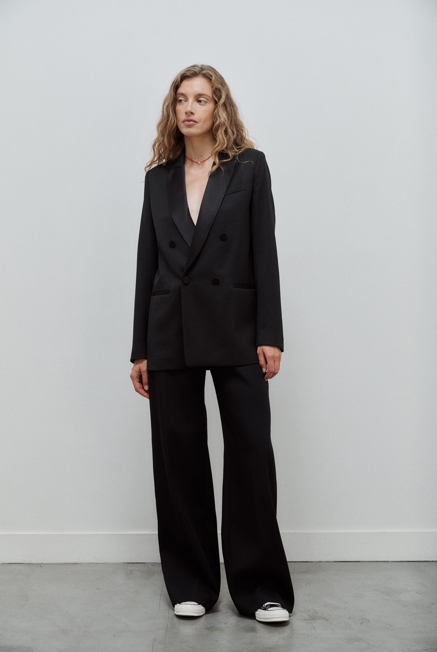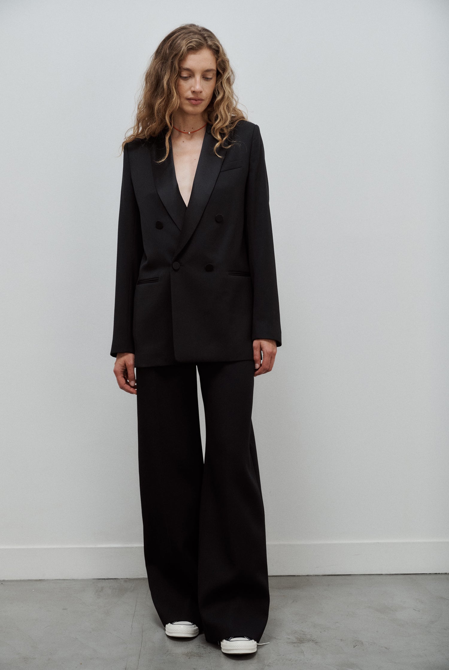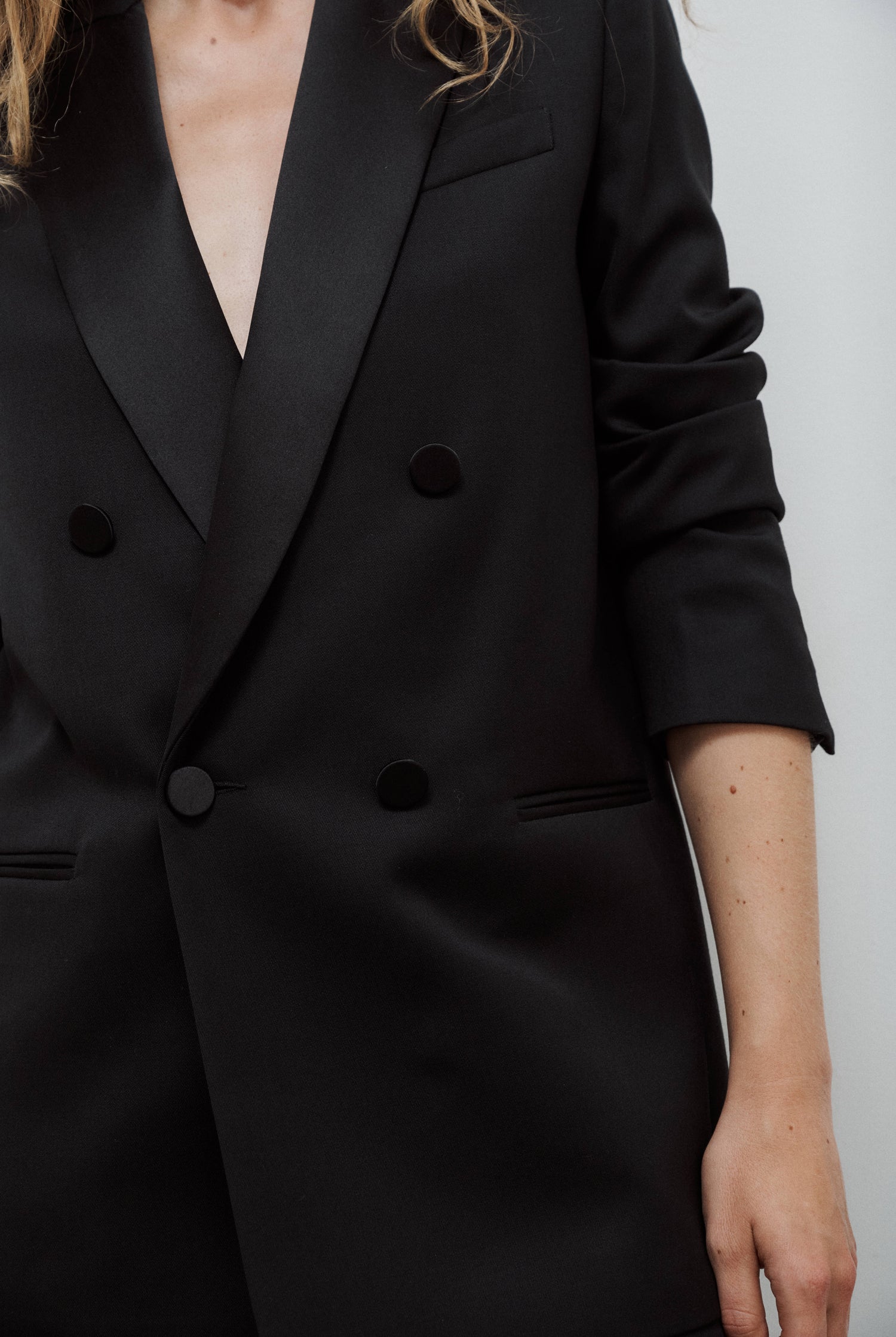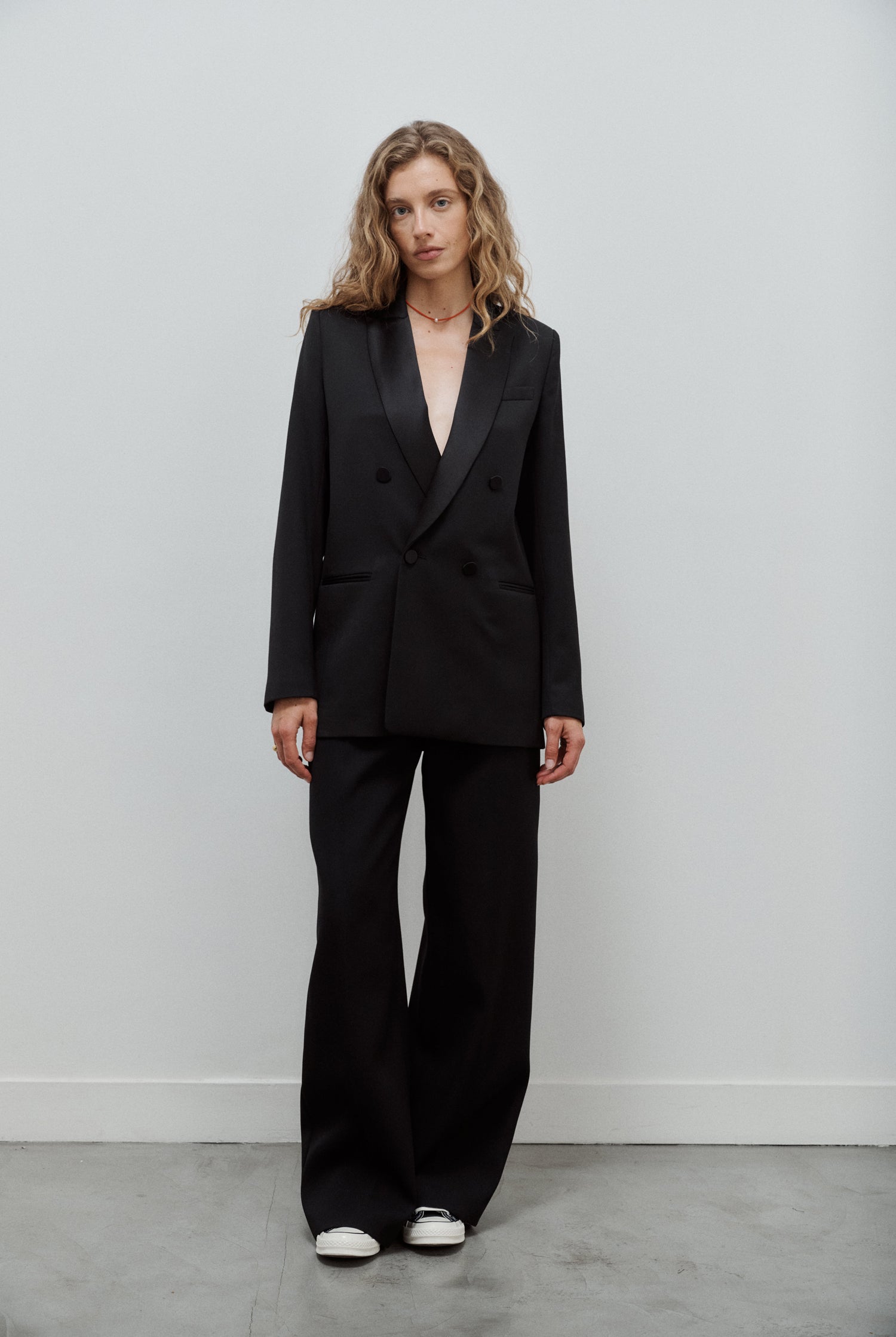 The blazer jacket has been revisited in ultra-elegant tuxedo jacket versions for evening wear with their black silk satin collars. In tone-on-tone black or contrasting black and white, our tuxedo jackets made in France can be worn for special occasions but also every day over a T-shirt and jeans, creating a striking contrast.