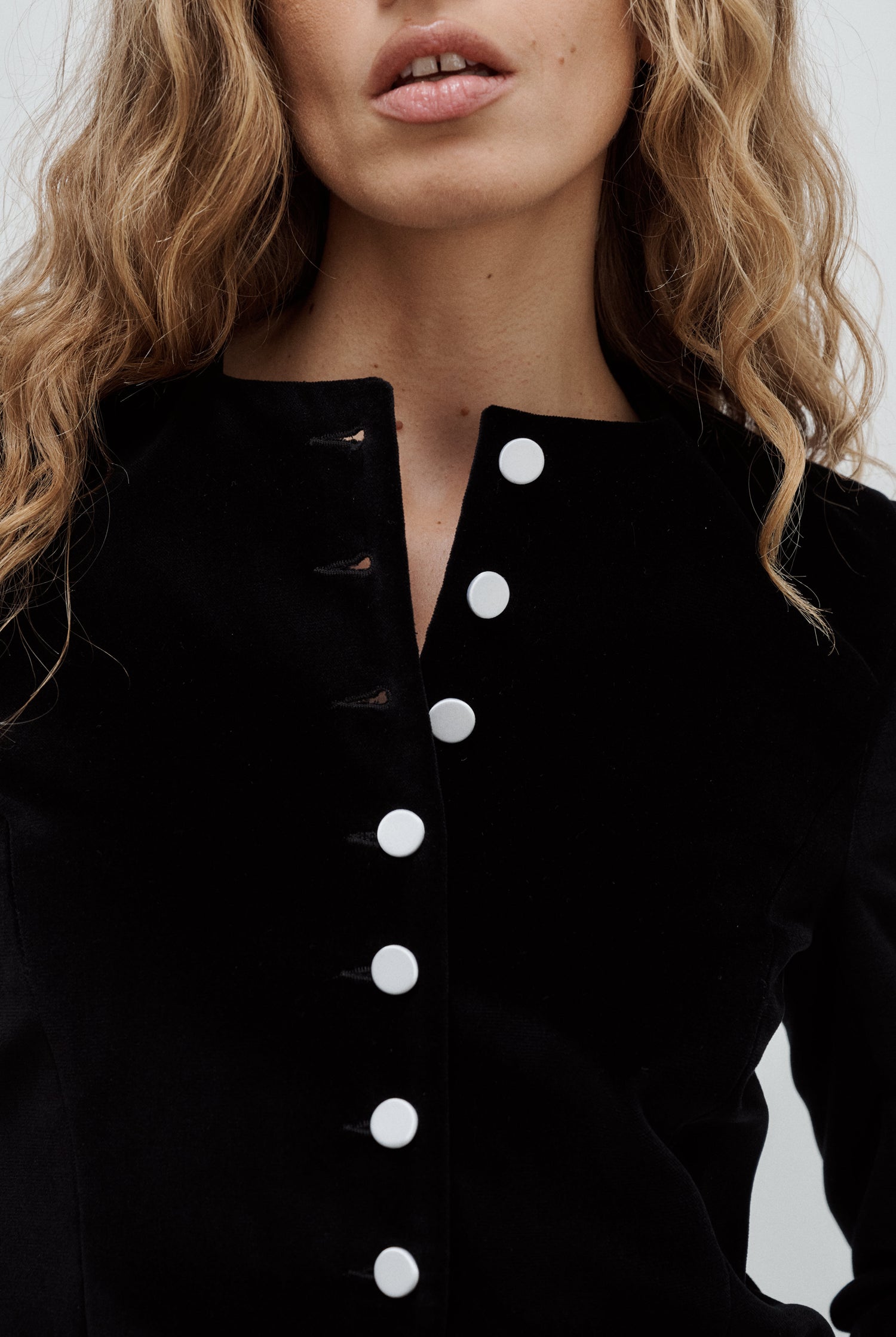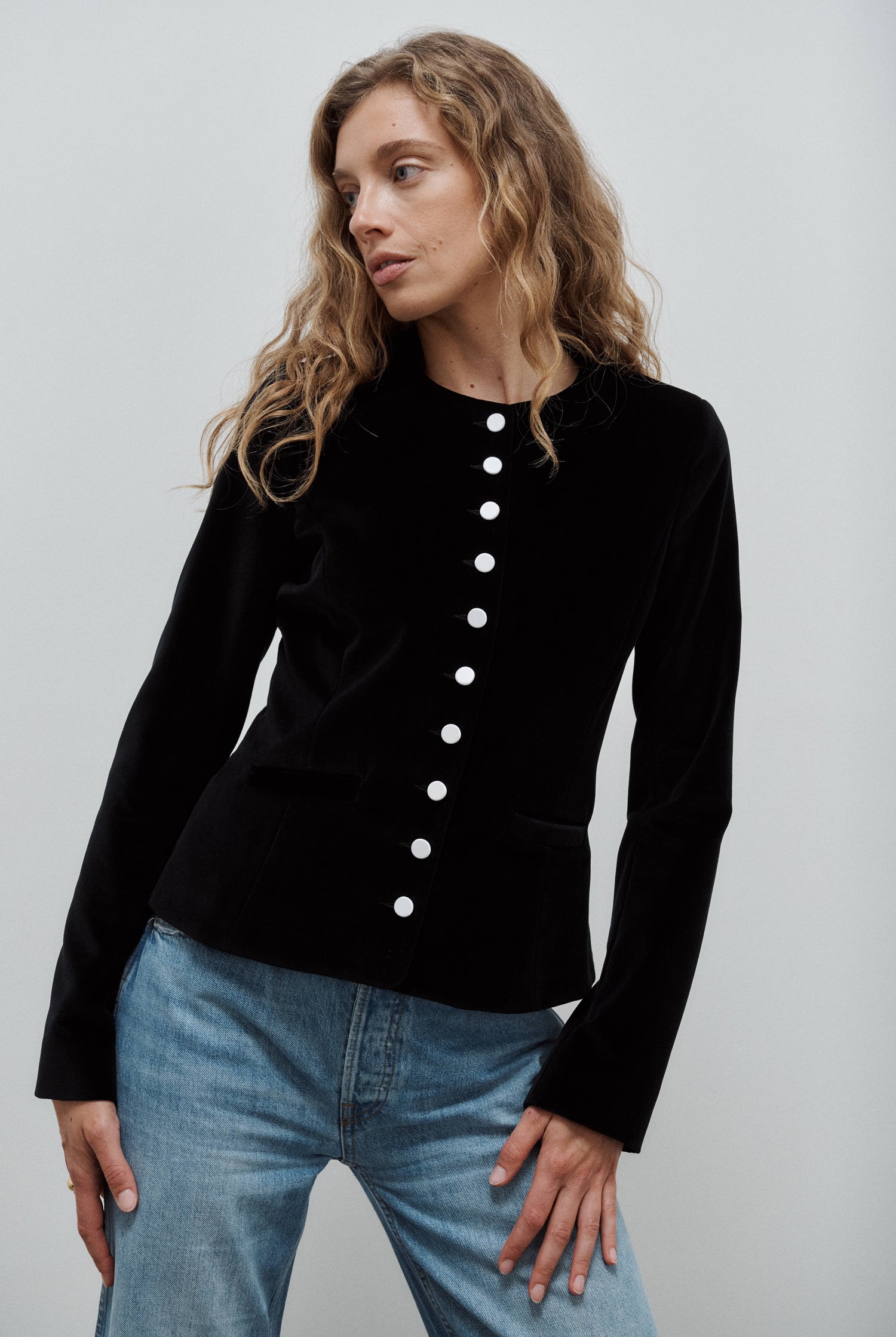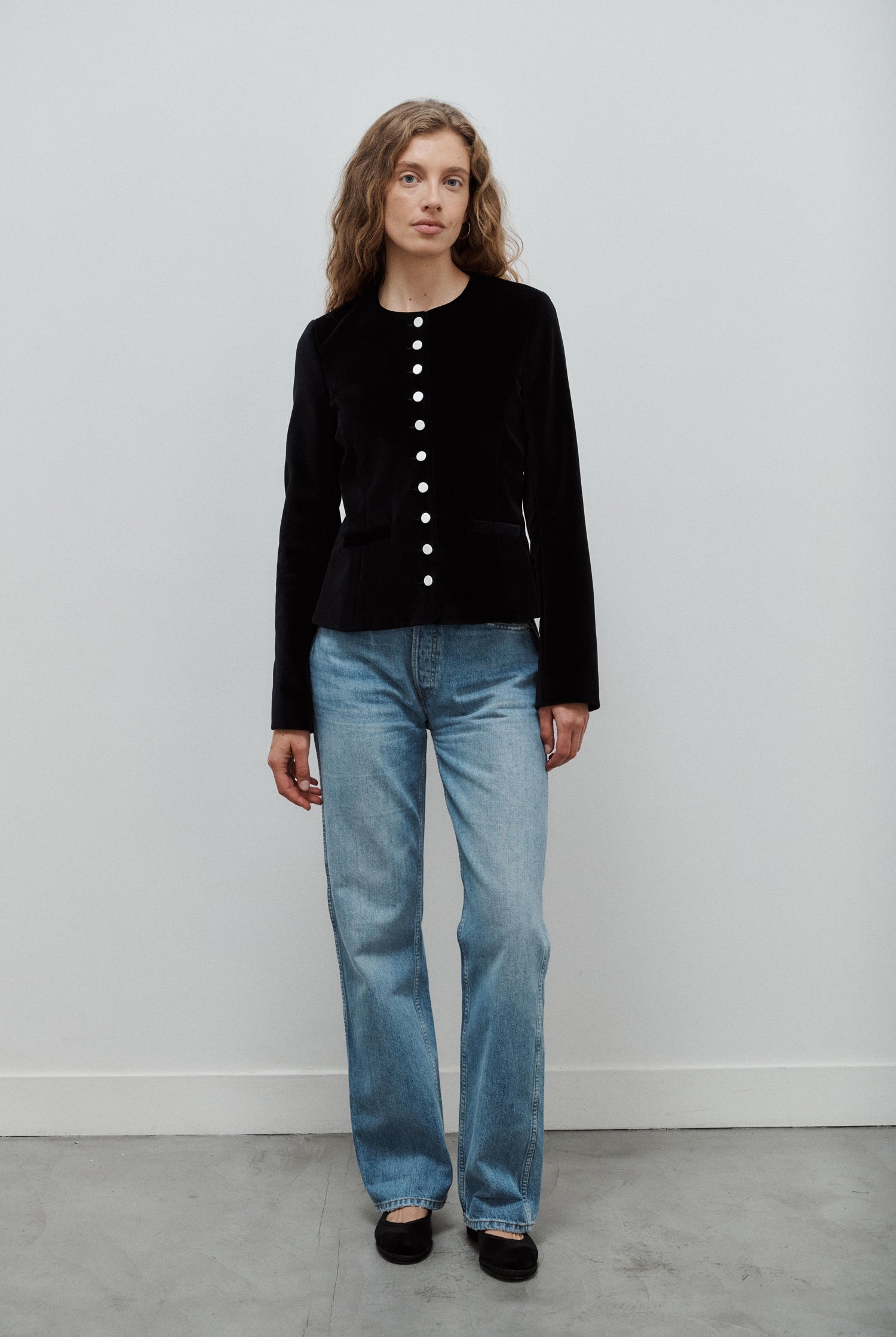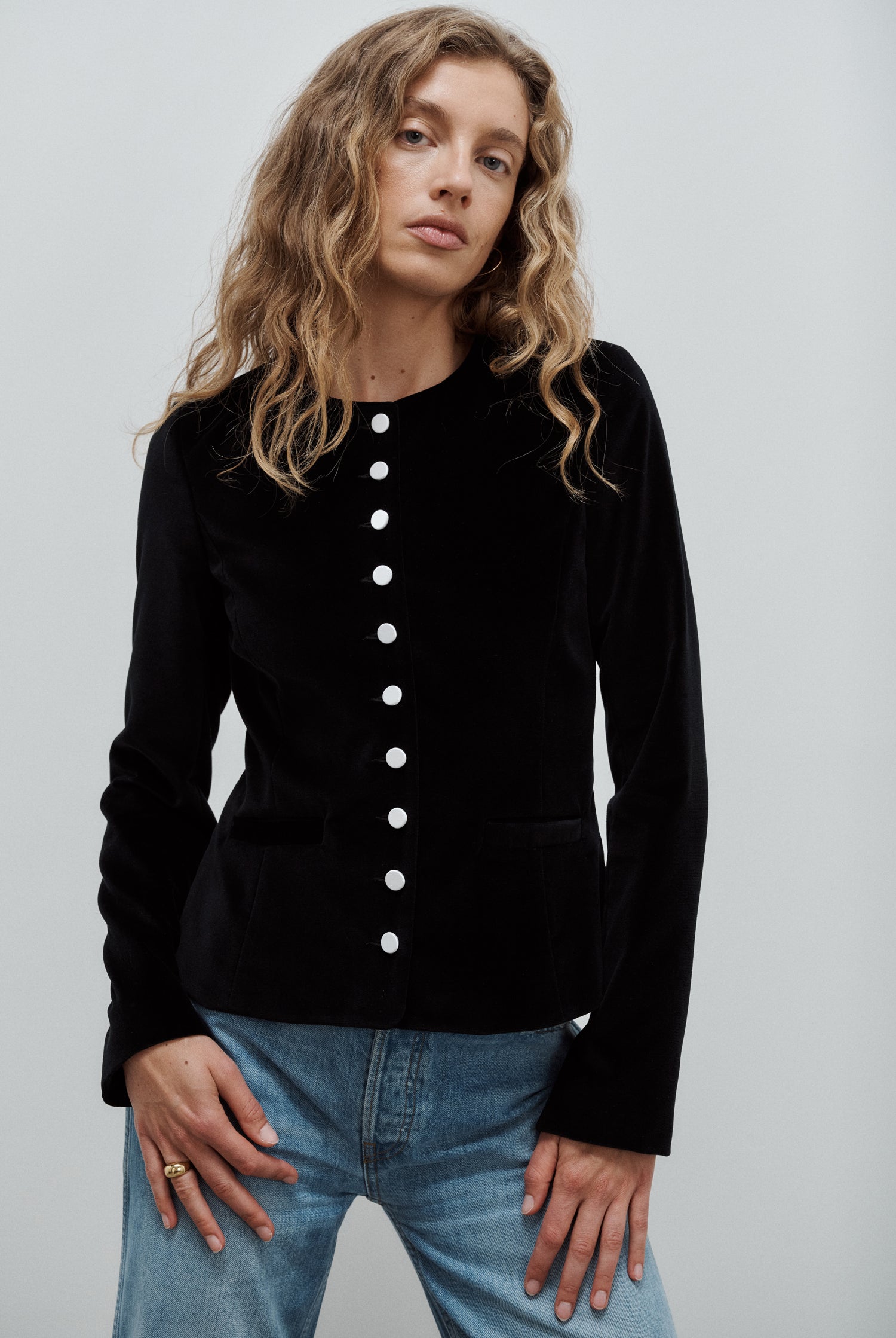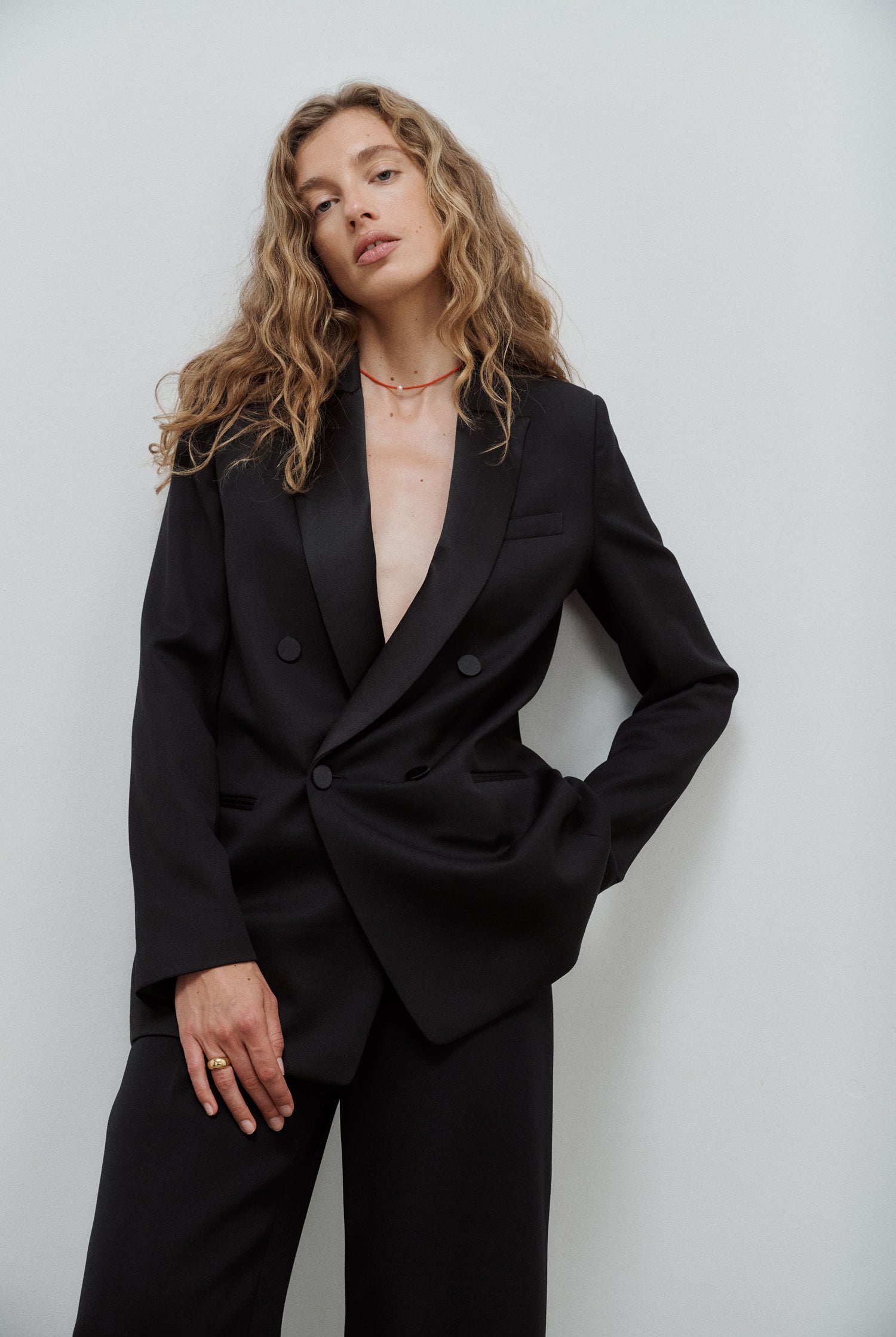 The blazer jacket has been revisited in ultra-elegant tuxedo jacket versions for evening wear with their black silk satin collars. In tone-on-tone black or contrasting black and white, our tuxedo jackets made in France can be worn for special occasions but also every day over a T-shirt and jeans, creating a striking contrast.