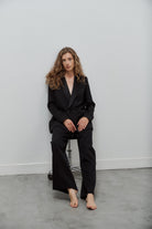 Christy Grain de Poudre Wool Smoking Jacket with Black Satin Collar