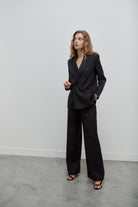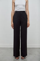 Bianca Charcoal Wool Twill Straight-Leg Pants