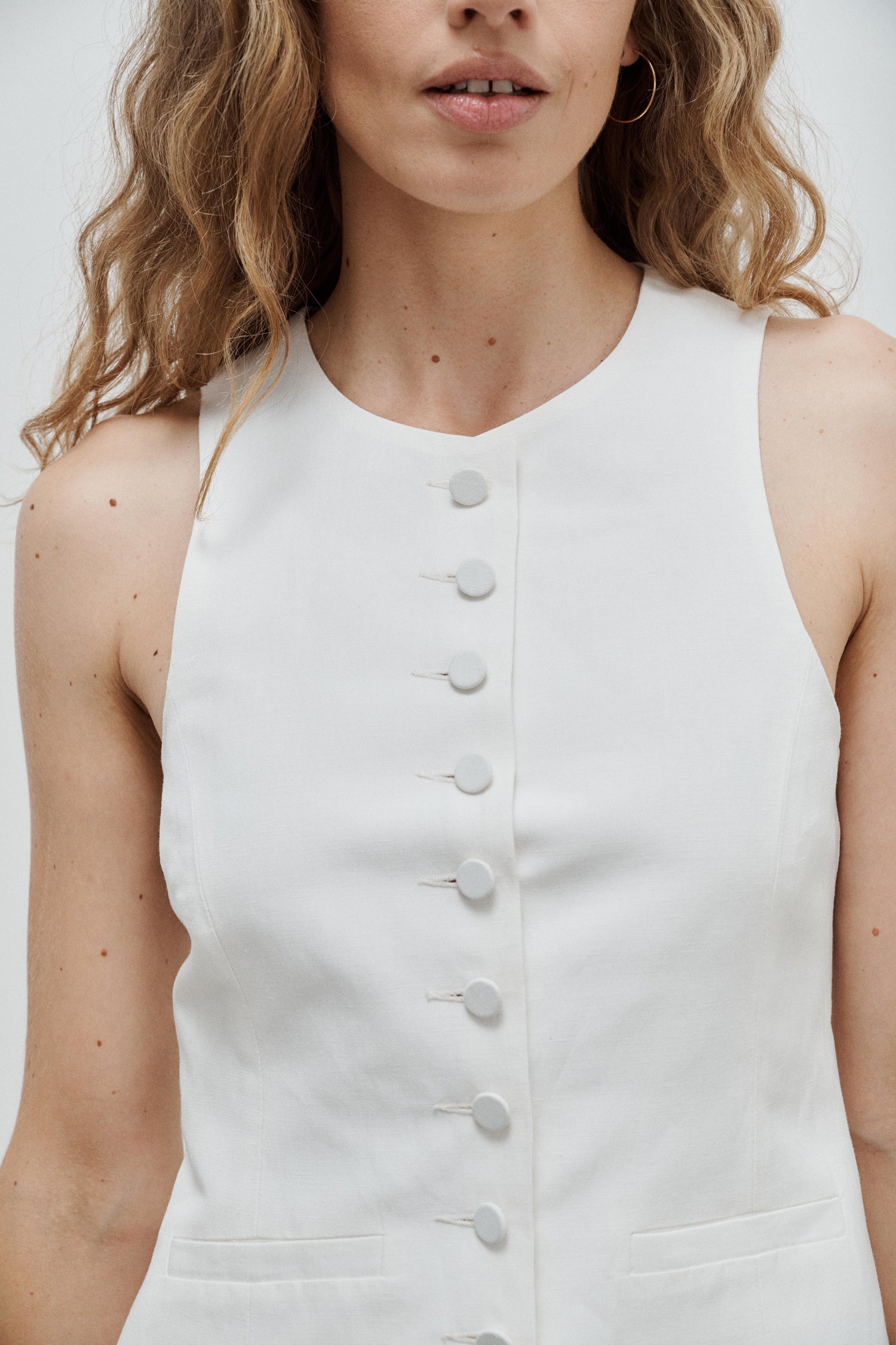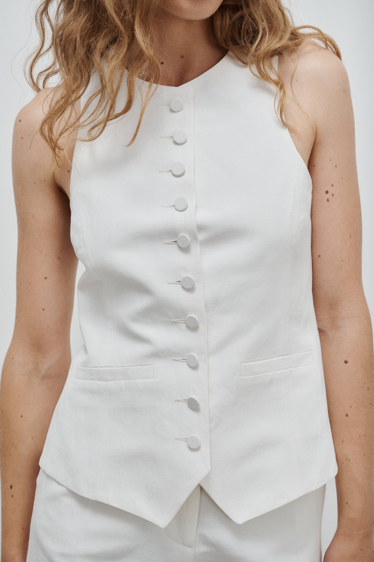 Monica Off-White Linen and Silk Canvas Vest
