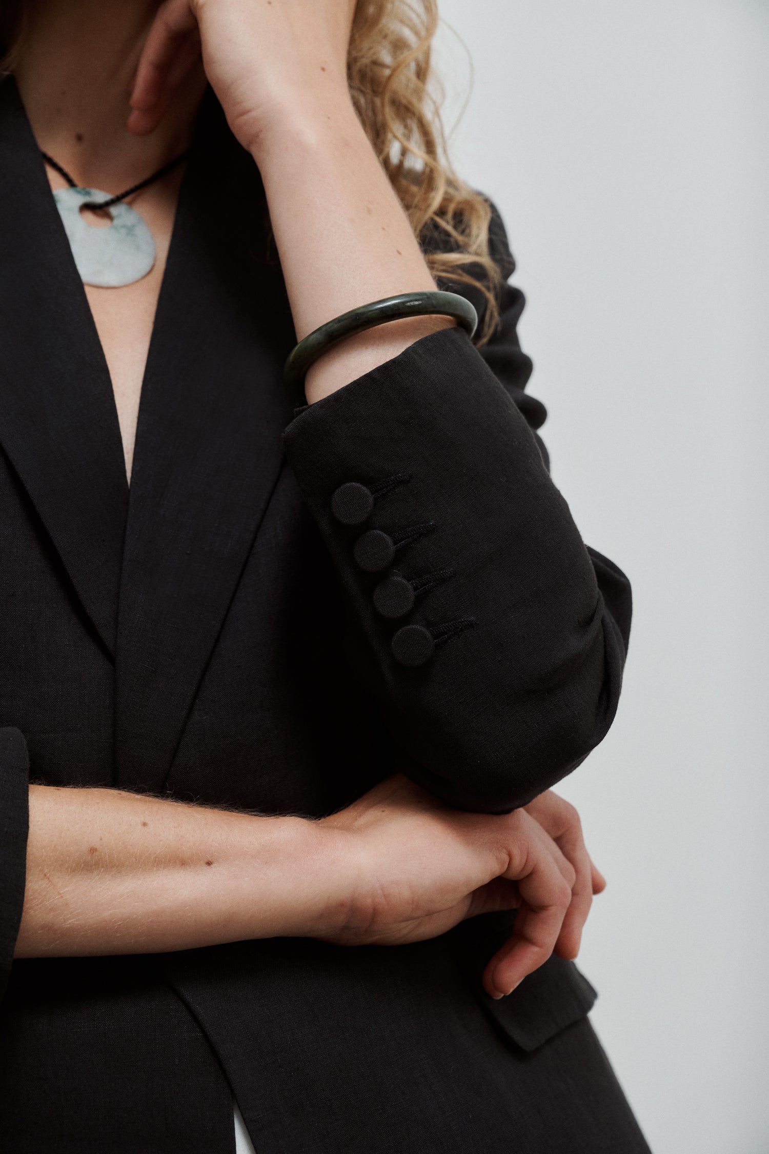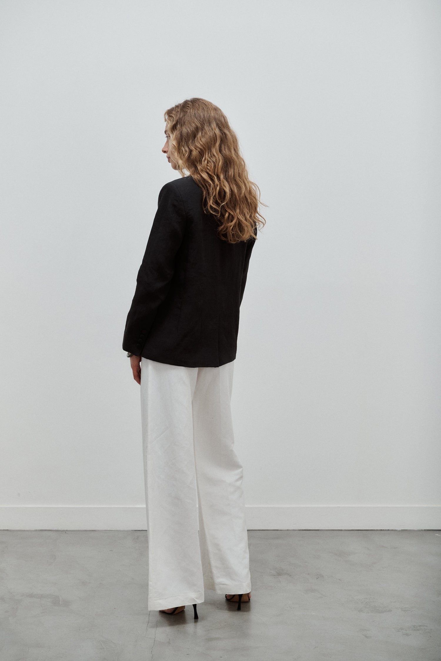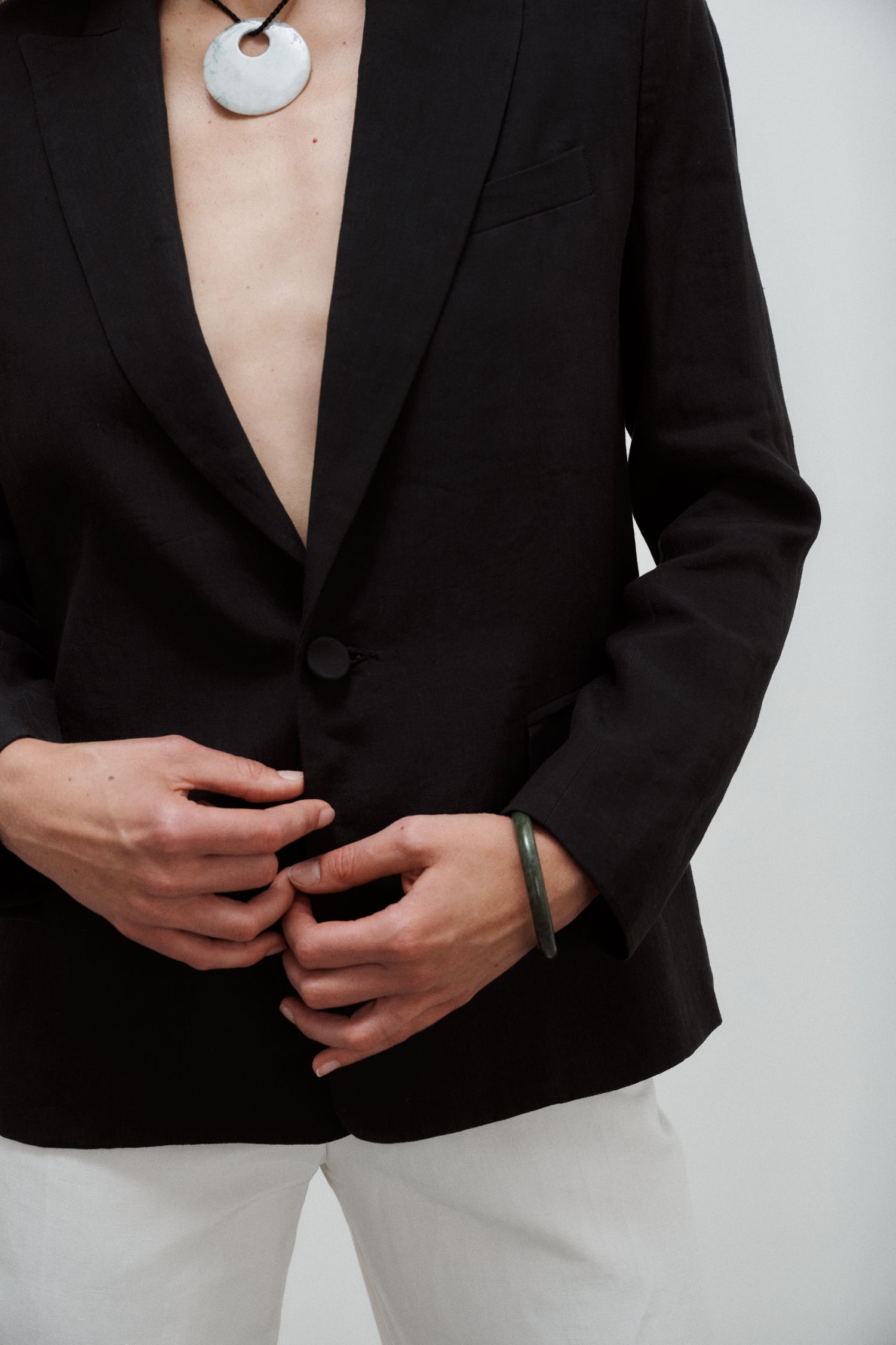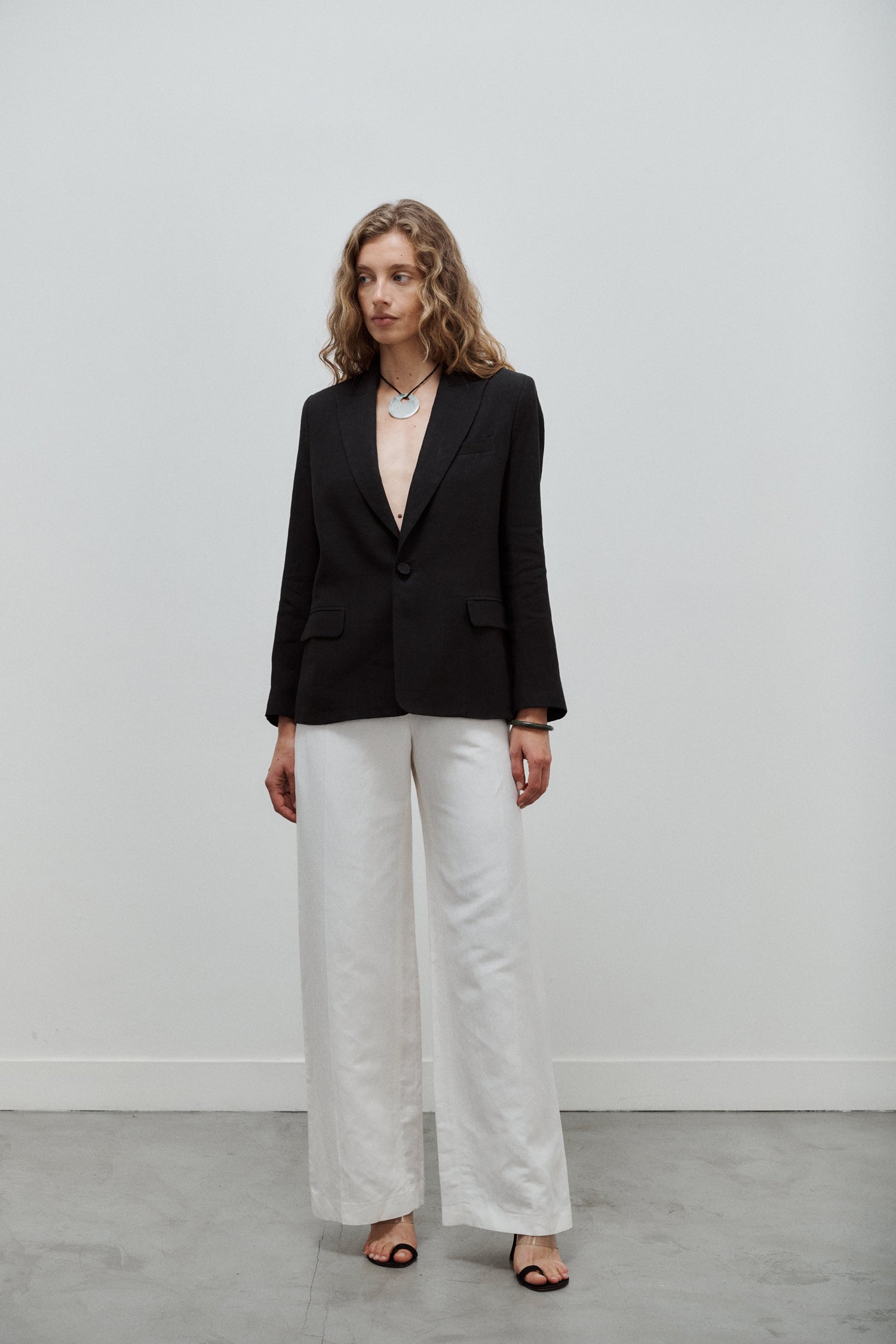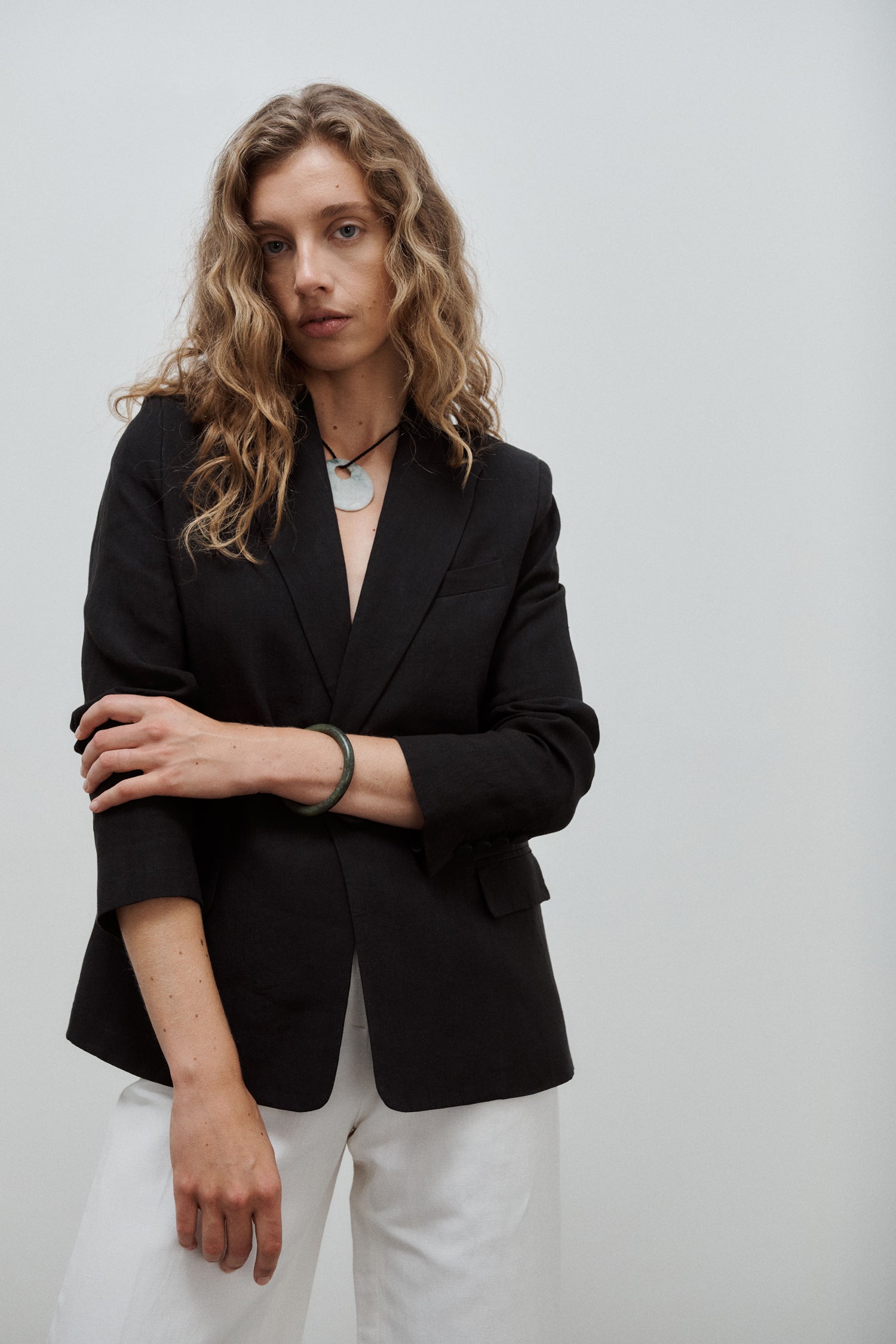 Veste de Tailleur Lauren Toile de Lin Lavé Noir